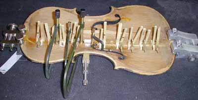 The same applies for rib cracks. See photo at bottom of this page showing clamping of a full length crack in a violin belly.