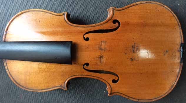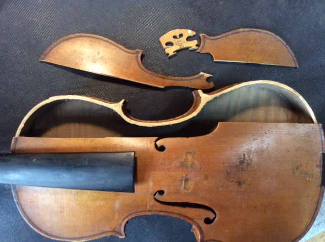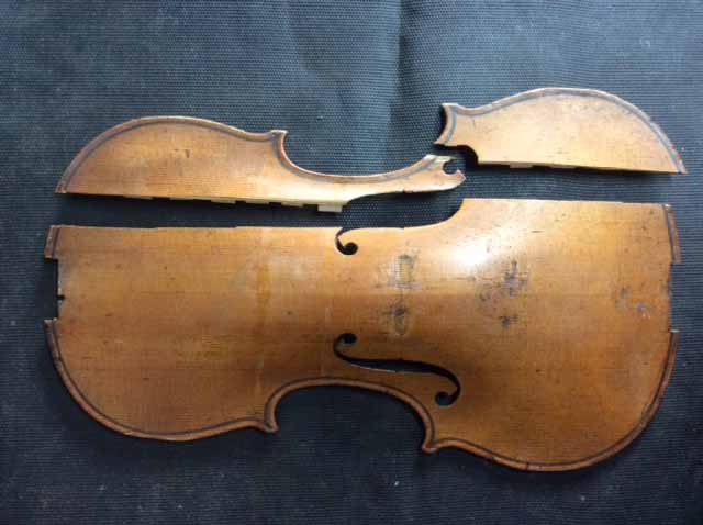 The image on the right above shows the belly after repair and varnish has been retouched,