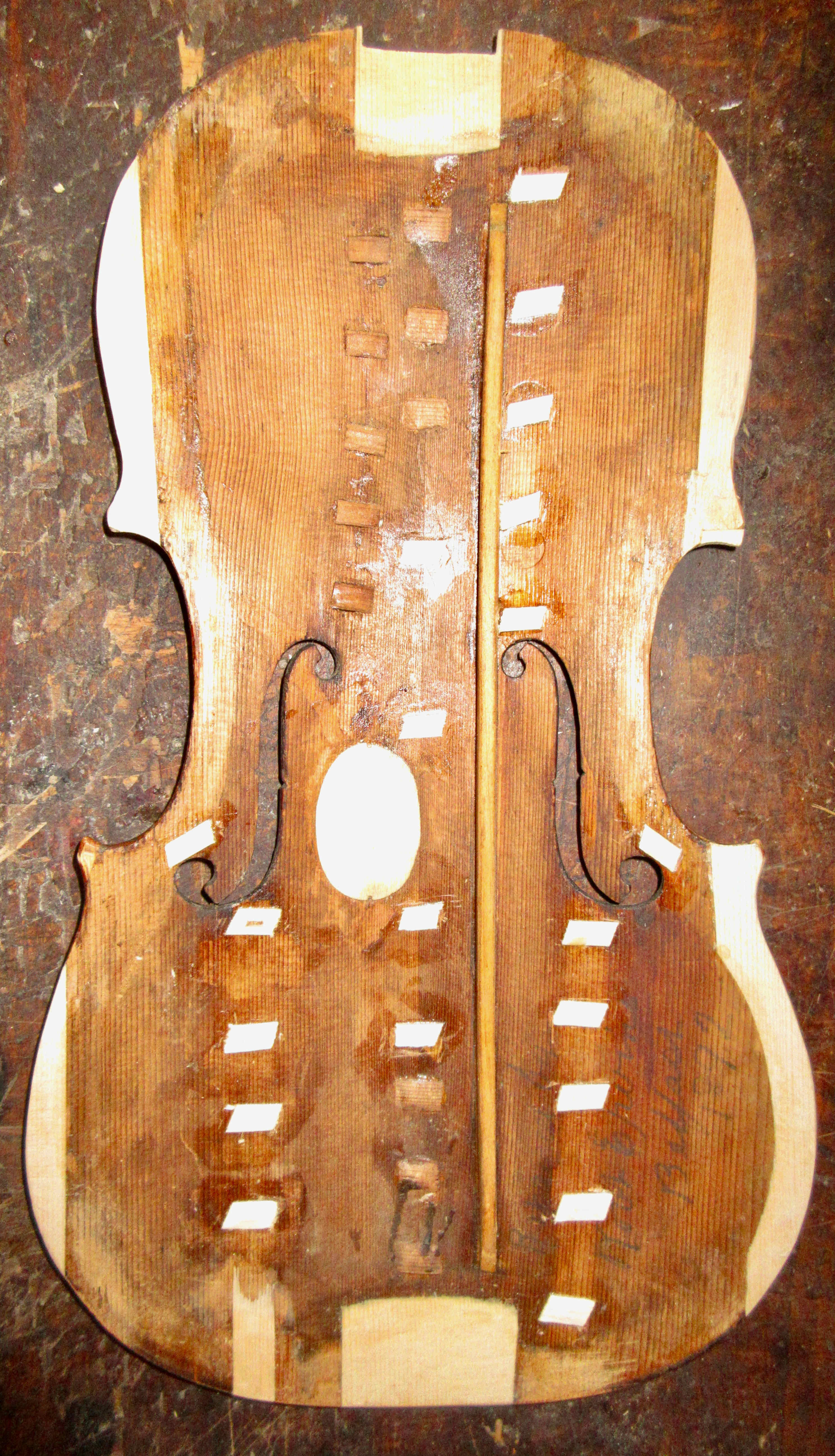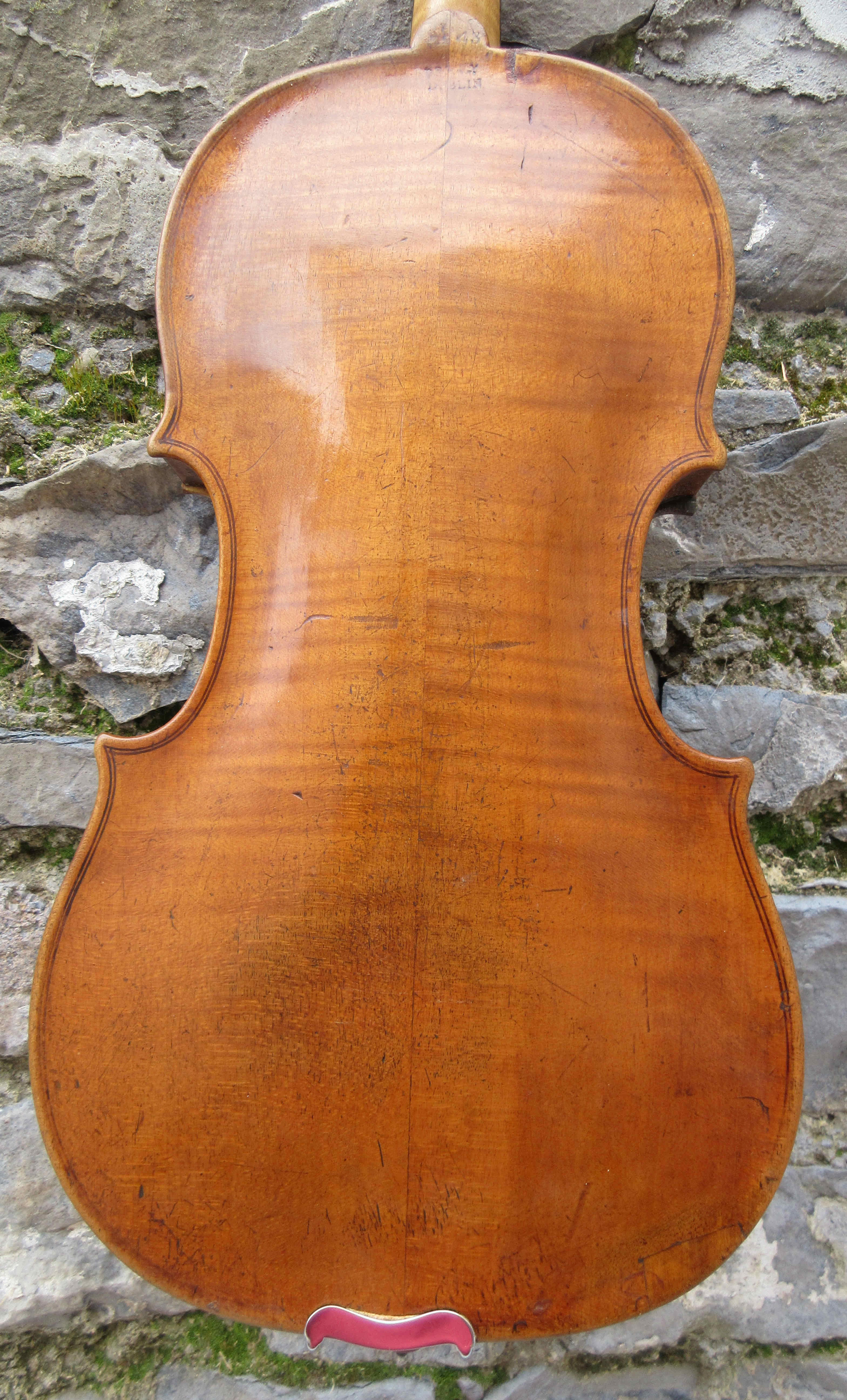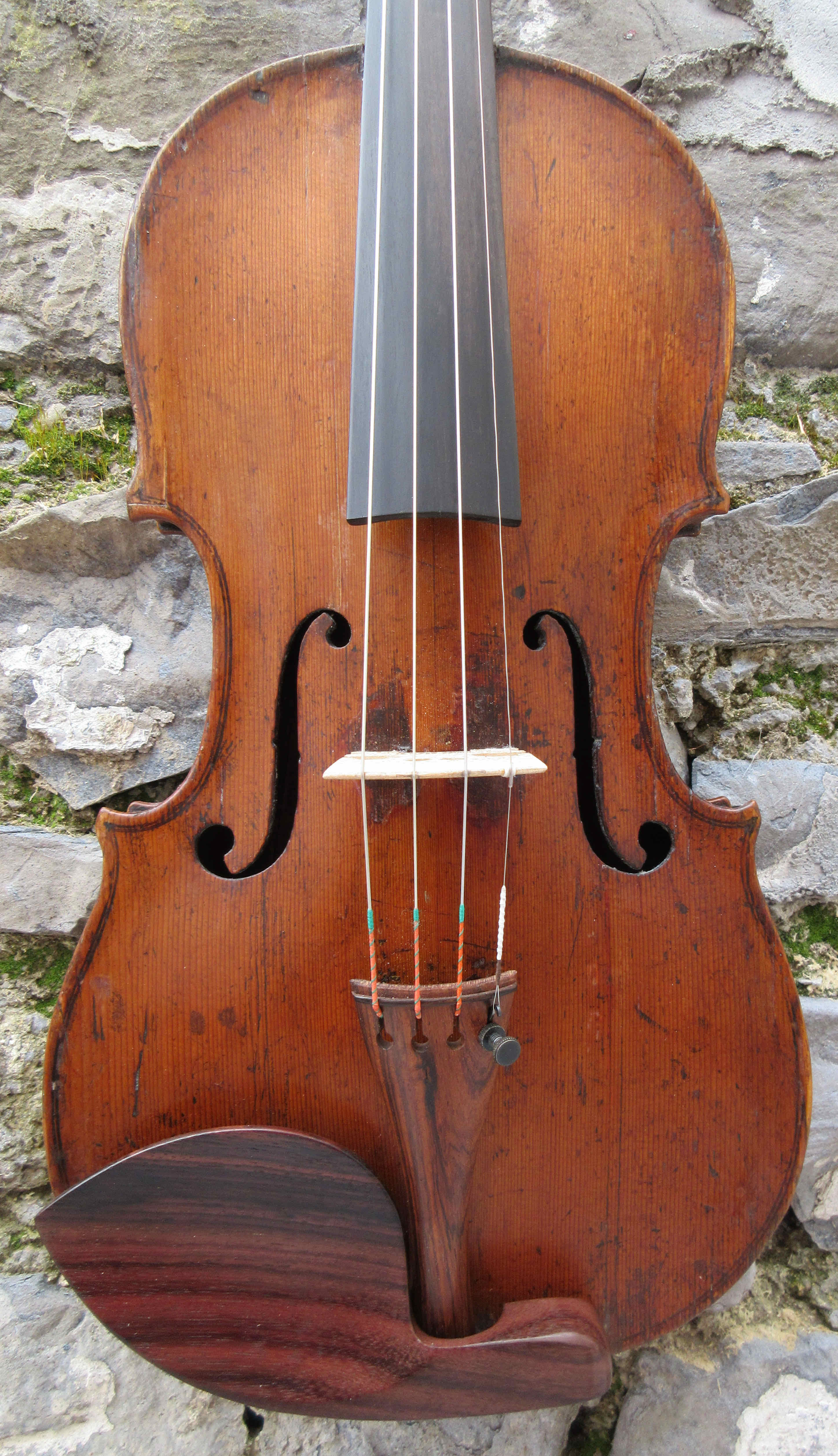 Perry and Wilkinson Violin made in Dublin 1807 and Repaired by Robert Irvine of Belfast in 1892 also having some older repairs. This violin has many cracks in the front and some are opening with age. So I am opening cleaning and gluing most of the cracks in the belly. Previous repairers have made the edges thin in parts and damage from removing the front requires half edging repairs see image where new wood has been fitted restoring the thickness and gluing platform. Also I have fitted a soundpost patch which should have been done even though the cracks in this area are short. But the damage done to the inside of the belly by incorrectly fitted sound post require this repair now. Some minor repairs to the back seem to be holding well. One lining on the upper treble side rib needs resetting. A new bottom block fitted the old one had two cracks on each side of the endpin. I shortened the lower bout ribs to allow them to be reseated on their gluing platform, this repair needs to be done with old instruments as the belly and back shrink across the grain and then the ribs are too long and the bouts keep opening. Previously the scroll has been grafted onto a new neck to modify from baroque to modern set up. The peg holes are maxed out so I have fitted peg bushings to bring it back to standard protecting the peg box into the future. Before and after images tell the story.