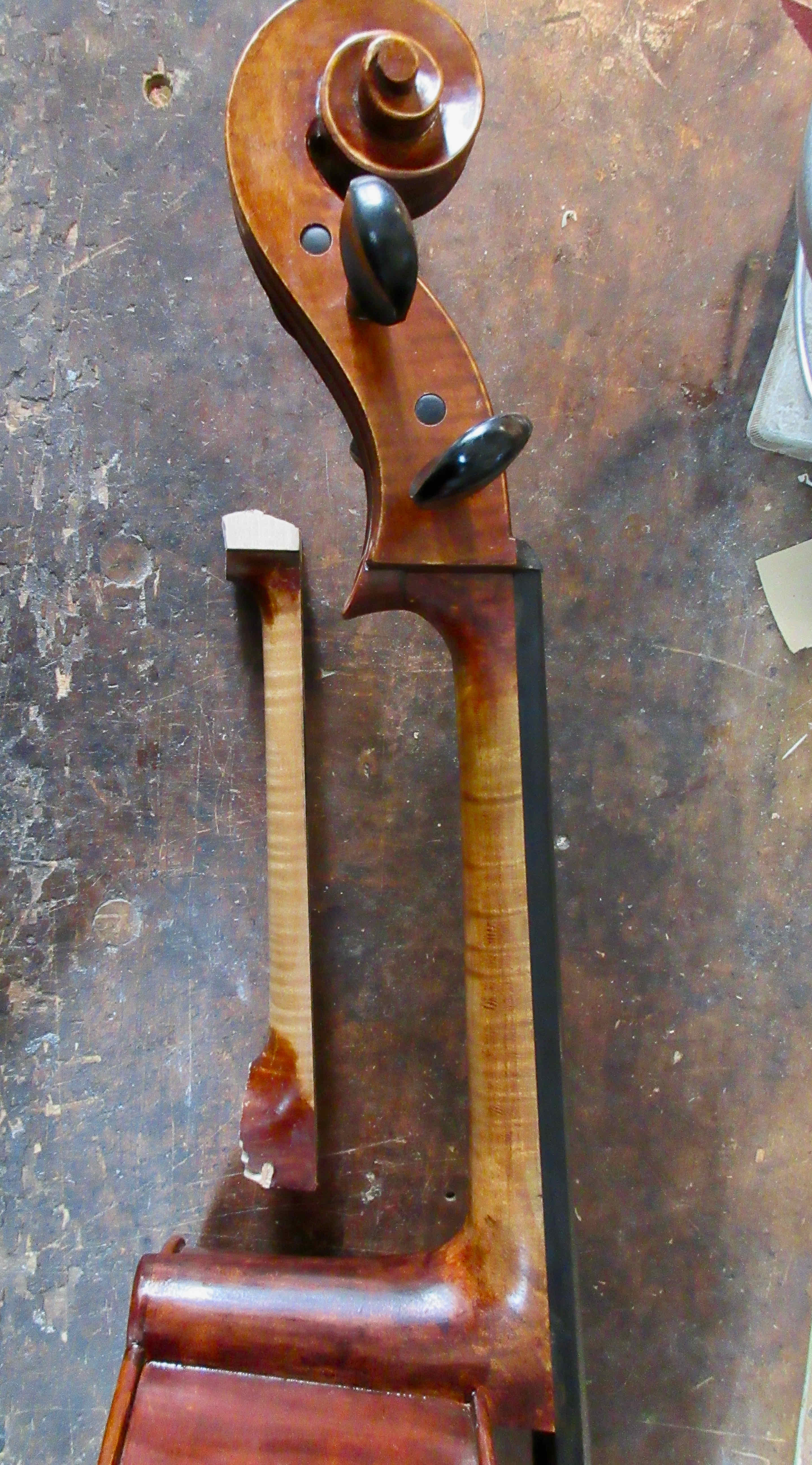 Cello Scroll graft:Repairing a broken neck root