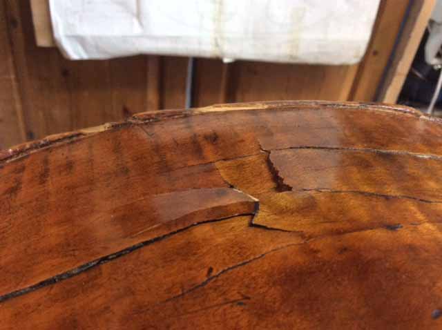 Resulting in about 20 cracks to the lower bass side rib. The amateur repairs done very badly using three different types of glue
